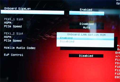3. 두 번째 메뉴 (Onboard LAN Option ROM) 선택 [Enter] / Enabled 선택 후 [Enter]