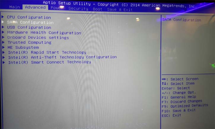 2. 위 멘중 두번째 메뉴인 [Advanced]를 선택후 아래 메뉴중 두번째 메뉴인 [SATA Configuration] 를 선택하여 주십시오