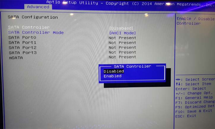 3. 아래 매뉴중 [SATA Controller] 을 선택하셔서 [Disabled]를 선택하여 주십시오. *컴퓨터 끄지지 않는 원인이 됩니다.