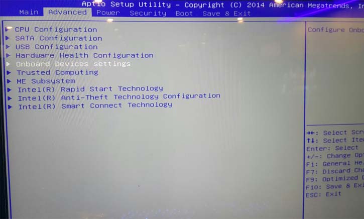 4. [Esc]를 하여 다시 5번째 메뉴인 [Onboard Devices]를 선택하여 주십시오