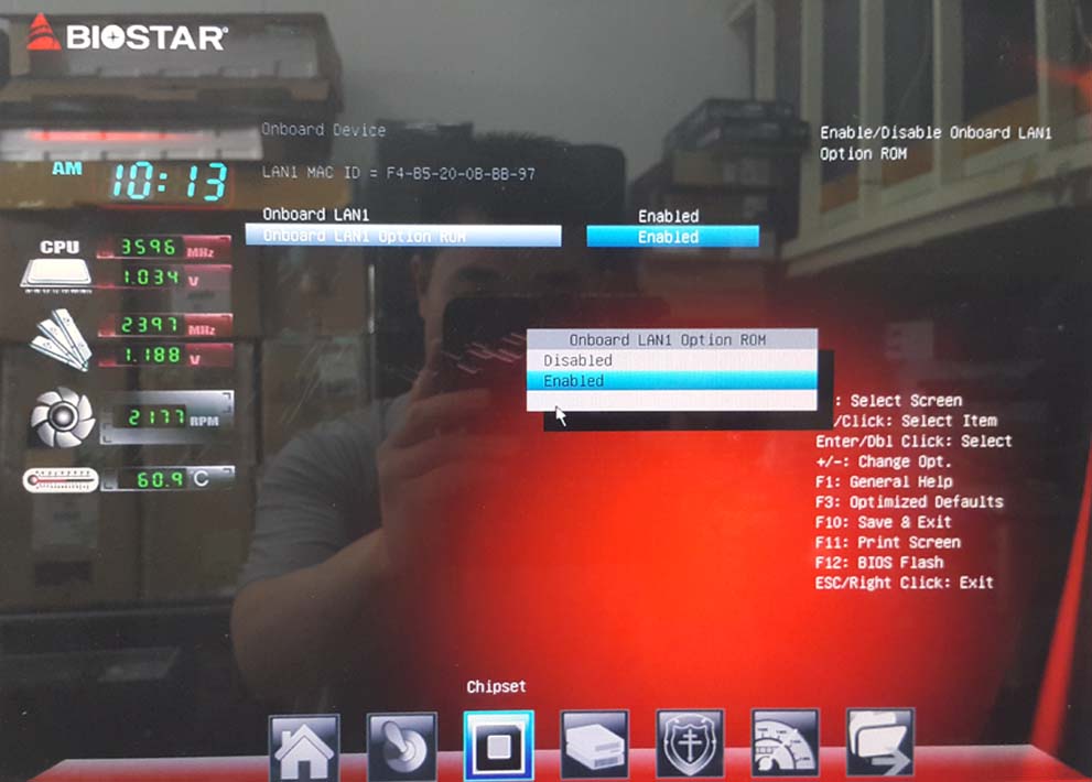 5. 두번째 [Omboard LAN1 Option ROM]를 선택하고 [Enter] 아래 그림처름 실행[Enabled]를 선택하여 주세요