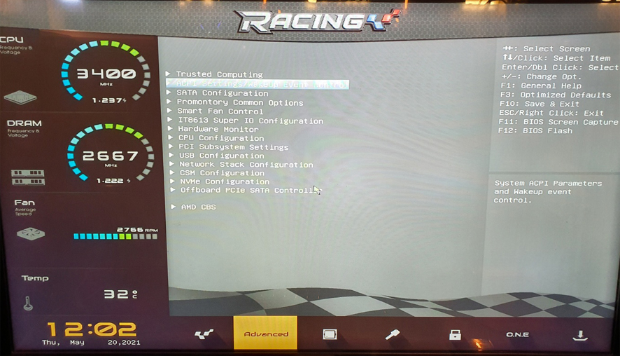 4. [Esc] 로 이동하여 아래 메뉴 [ACPI Setting/Wakup Event Control] 선택 하여 [Enter] 해 주세요.