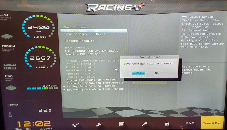 7. 모든 세팅이 끝났어면 [F10]을 클릭하여 [Saver & Reset] 을 선택하시고 [Enter]