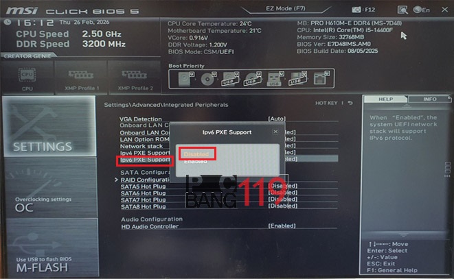 7. 메뉴중 7번째 [Ipxv6 PXE Support]을 선택 하여 [Enter] 하시고 아래 그림 처럼 실행[Disabled]를 선택하여 주세요.