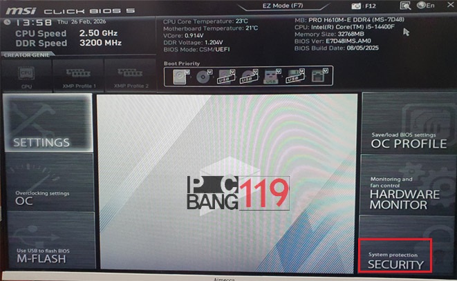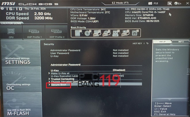 12. SECURITY] 메뉴중 제일 아래 [Security Boot] 선택해 주세요.
