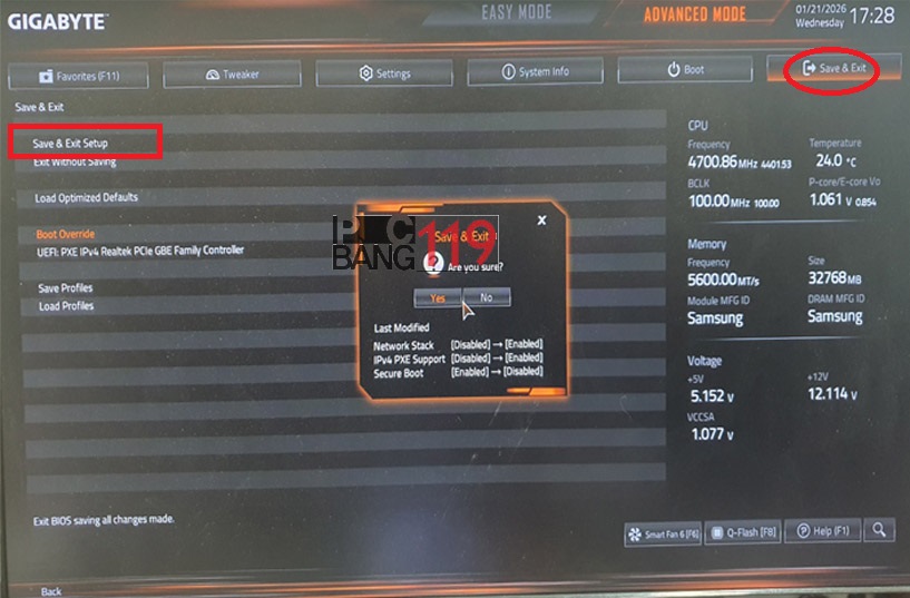 5. 모든 세팅이 끝났어면 [F10]을 클릭하여 [Saver & Reset] 을 선택하시고 [Enter]