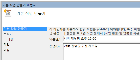 3. 이작업의 이름과 설명을 해둡니다. [트리거]에서는 작업 일정과 시간을 정의 합니다.