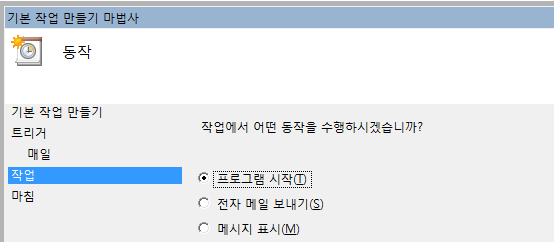 4. 작업은 대부분 [프로그램 시작]선택하여 줍니다.