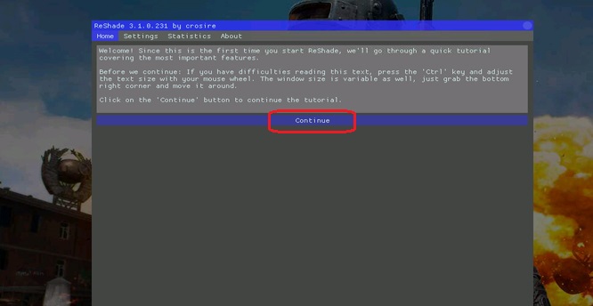 게임이 실행된후 [Shift + F2] 리쉐이드 설정화면이 나옵니다. 여기서 [Continue] 를 클릭 하십시오